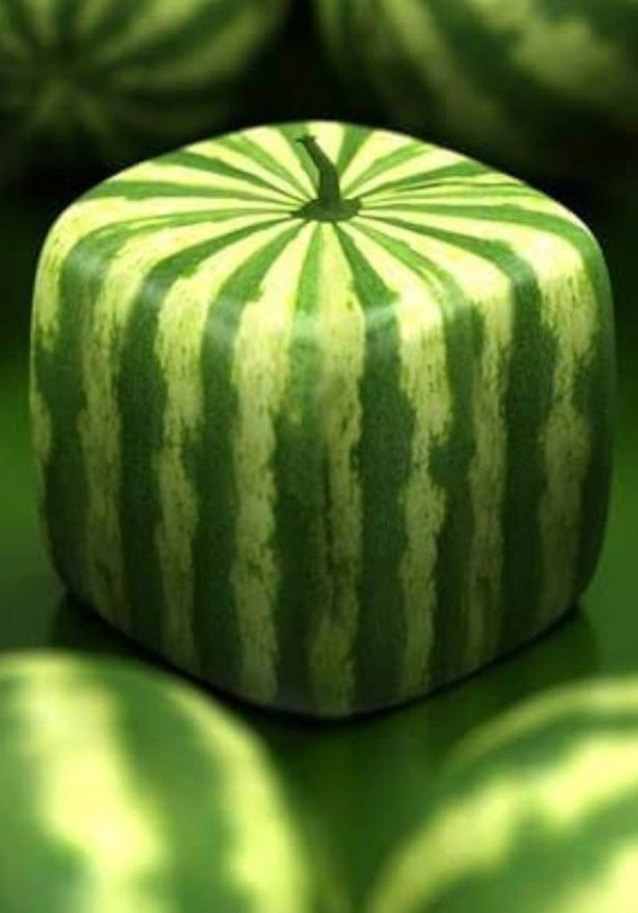 I remember my own first encounter clearly — those watermelons grown inside rigid molds from the moment they blossomed, forced to surrender every curve, every instinct to expand freely. Looking at them, I felt as if I were seeing the shape of a soul under pressure. And humans, I realized, are simply the grown-up versions of those cube watermelons.